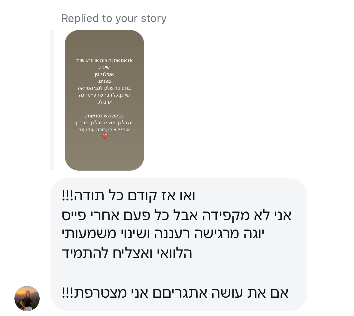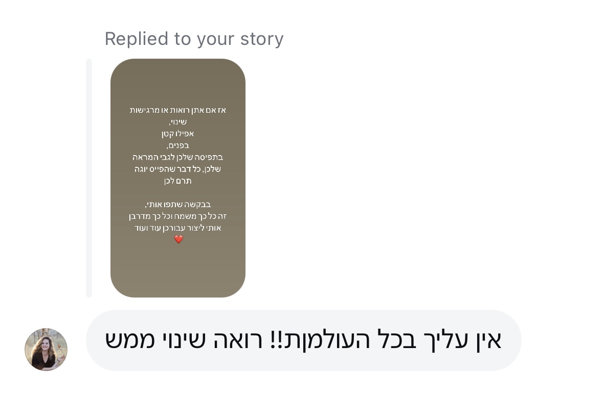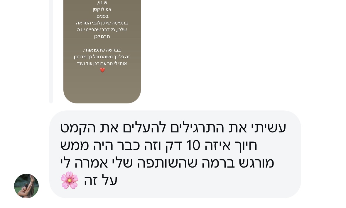 תוכלי לשוחח איתי ישירות בווטצאפ, לקבל מענה מהיר ויחס אישי כדי שלרגע לא תרגישי לבד בתהליך